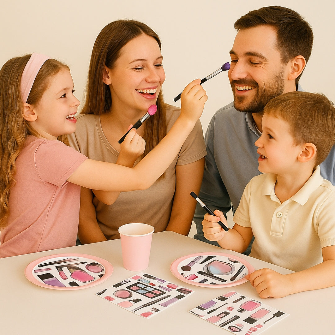 Complete 40-Piece Party Set: Includes matching fashion and makeup-themed paper plates, cups, and napkins, perfectly coordinated to serve food and drinks while adding a chic touch to your party décor.