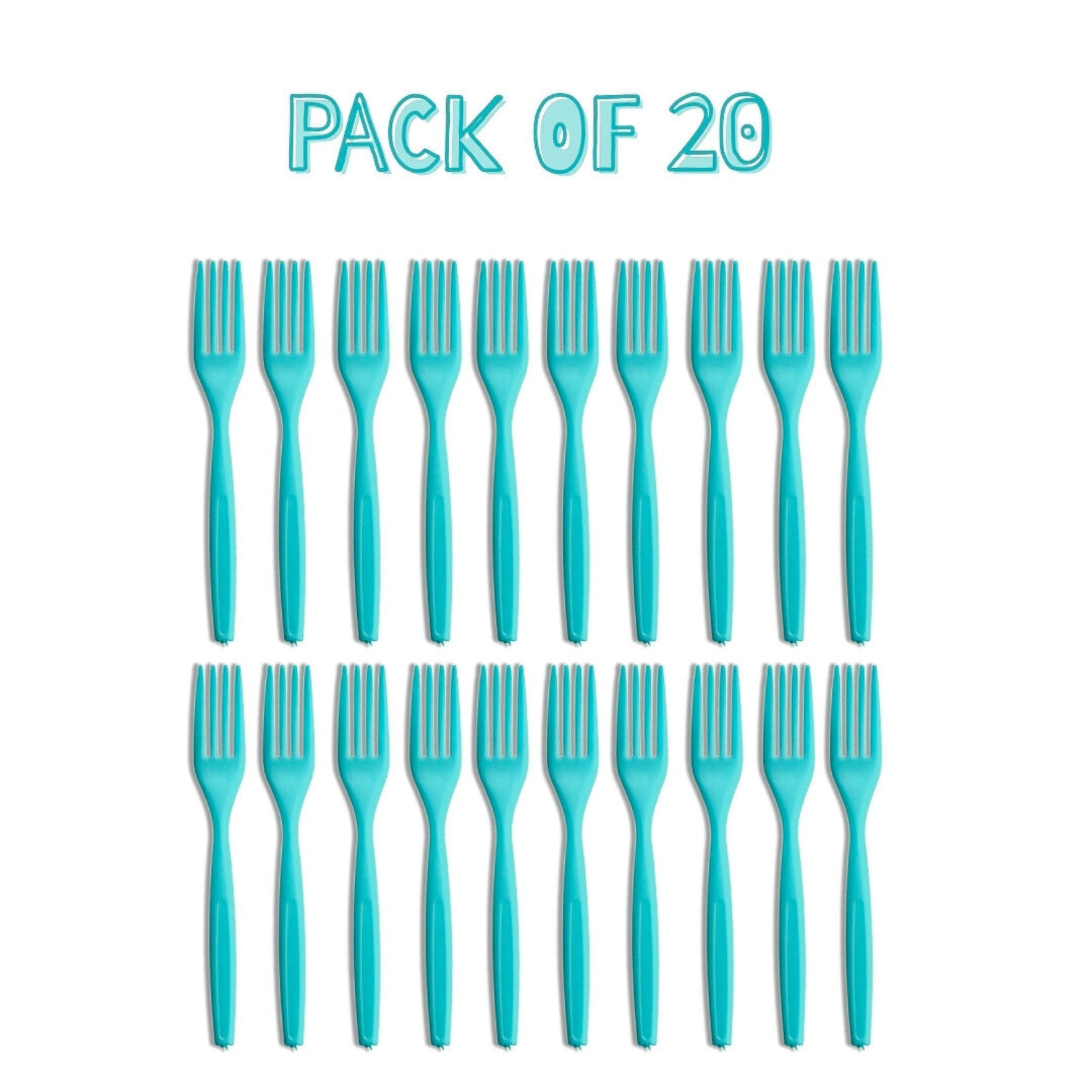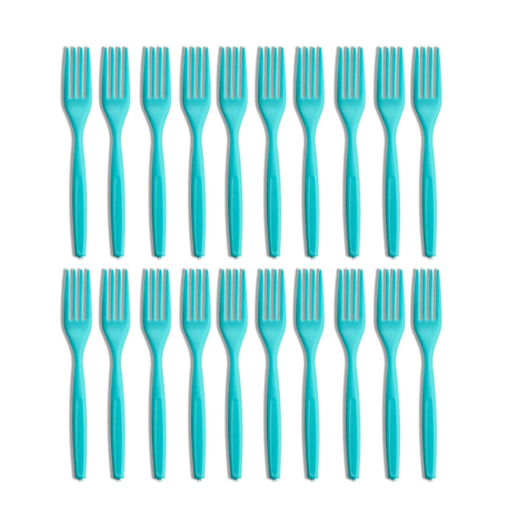Easy to Match – Bermuda Blue Fork 24 pc: The calm Bermuda Blue color pairs beautifully with many table themes. Mix these forks with white plates for a clean, crisp look or match them with patterned napkins for something more playful.
