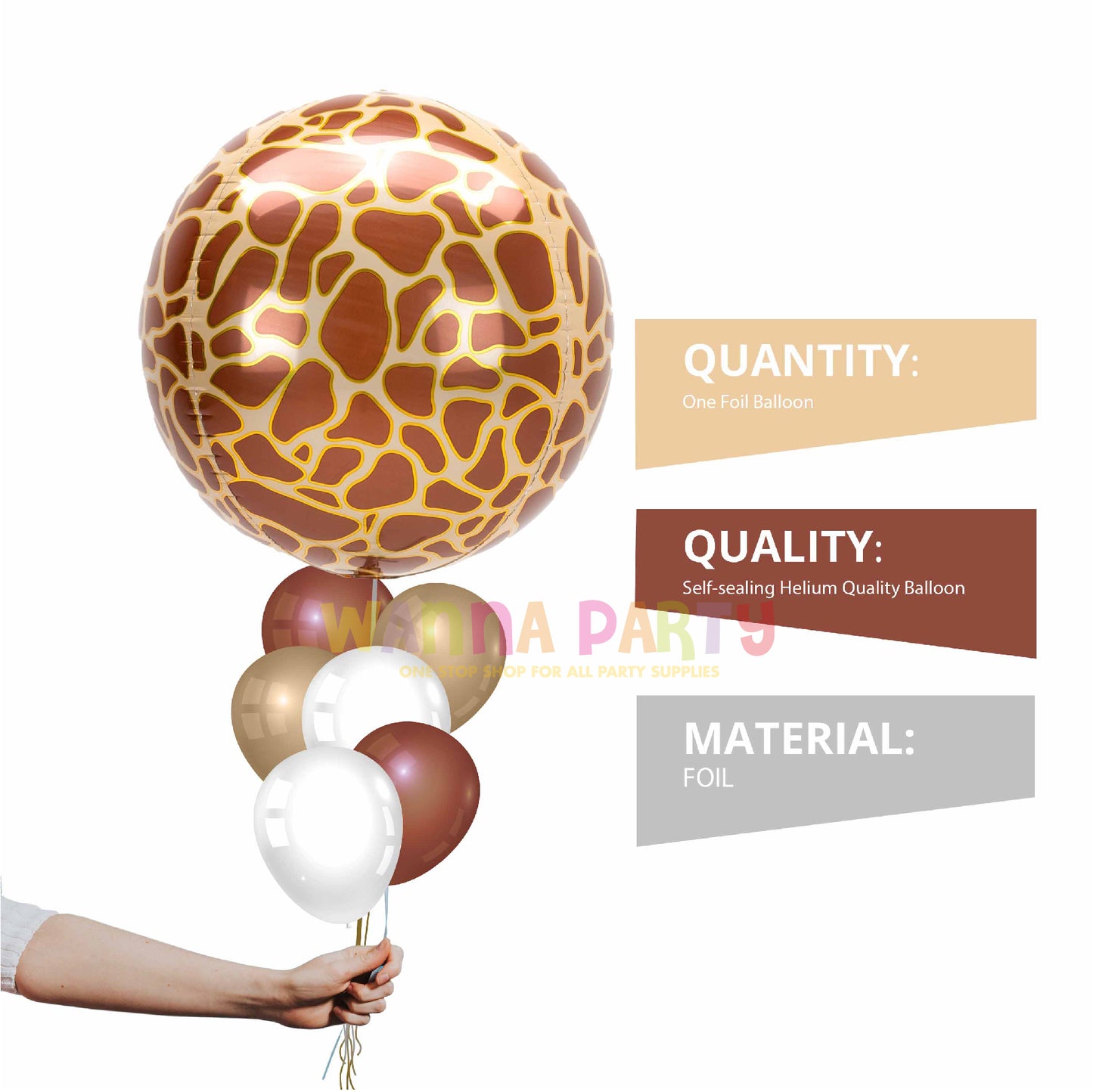 CELEBRATE IN STYLE:This Giraffe Print Orbz Balloon is sure to add a joyful atmosphere to any animal theme birthday or baby shower. The impressive design features a fine giraffe texture over a 16 inches orbz balloon.
