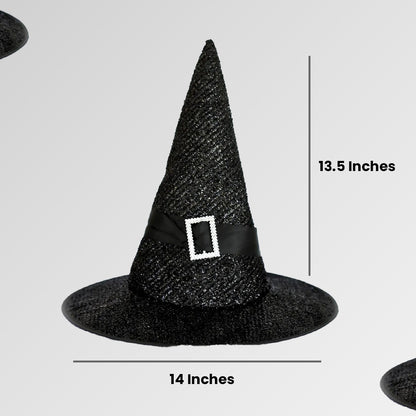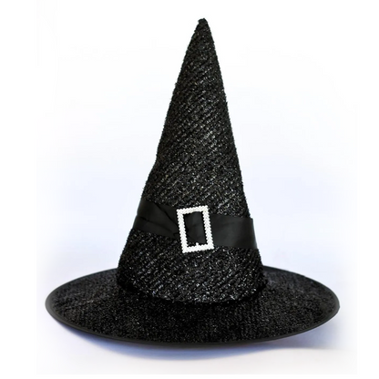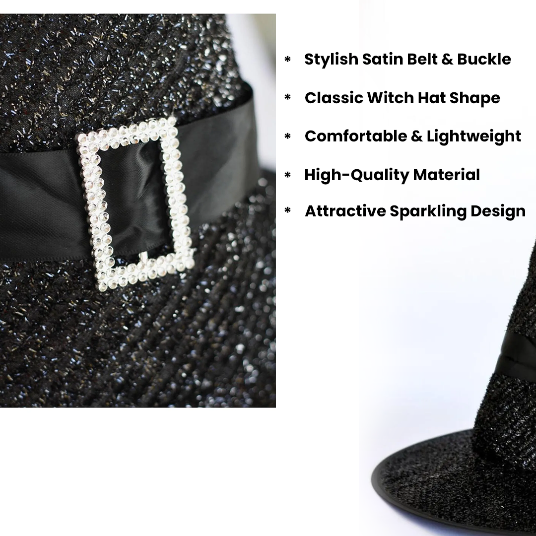 Elegant Shimmer Finish: Made with black shimmer fabric, the hat catches the light with a subtle sparkle, adding a magical and stylish touch to your witchy look.