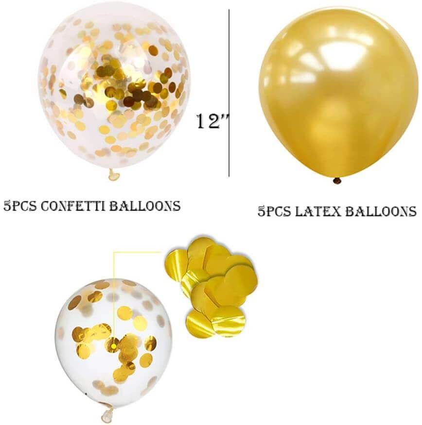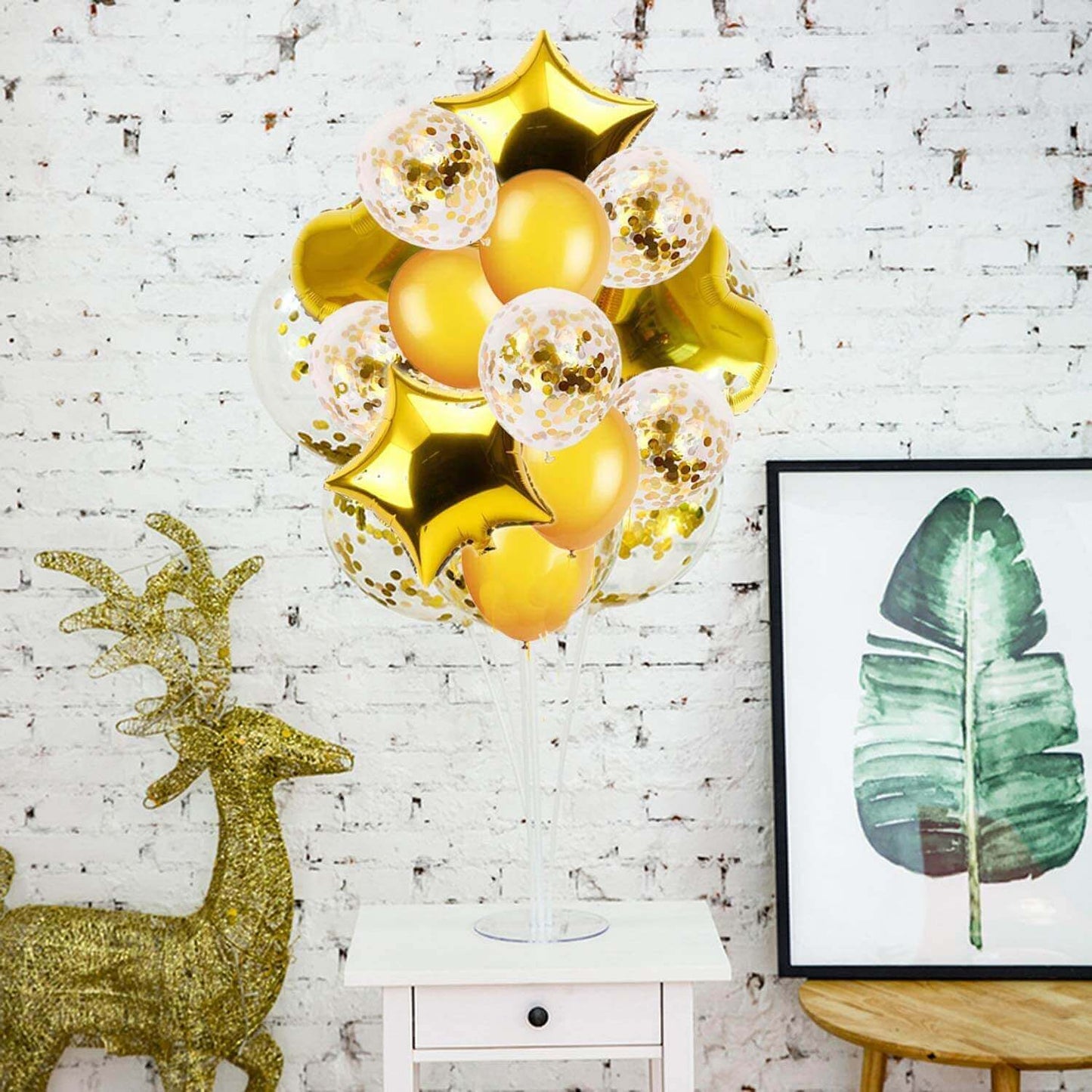 Take your celebrations to new heights with metallic gold confetti balloons. Fill these clear balloons with air or helium to wake the disc-shaped foil confetti. Tie them down to windows or furniture using a string or tape them to walls, ceilings, or the entrance to make a shining statement. These stars and heart-shaped foil balloons add extra glam to your birthday, anniversary, wedding, bady shower, bridal shower, or any party. All Balloons arrive uninflated. To inflate it with helium please visit your closest Wanna Party store or contact any helium gas provider near you. Kit contains a pack of 14Pcs.