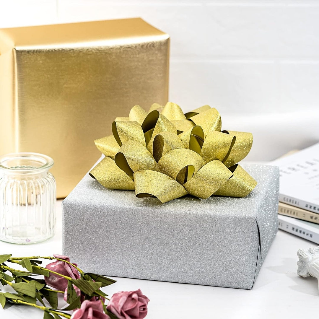 Elegant Golden Finish: These beautifully crafted golden bow ribbons add a luxurious and festive touch to any gift, making your packaging look extra special and celebration-ready.