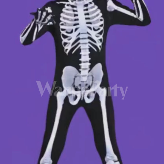 Spine-Chilling Ghost Costume: Transform your child into a spooky specter with this ghost costume for kids. The all-in-one jumpsuit features a realistic skeleton print on both the front and back, creating a hauntingly convincing look from every angle.