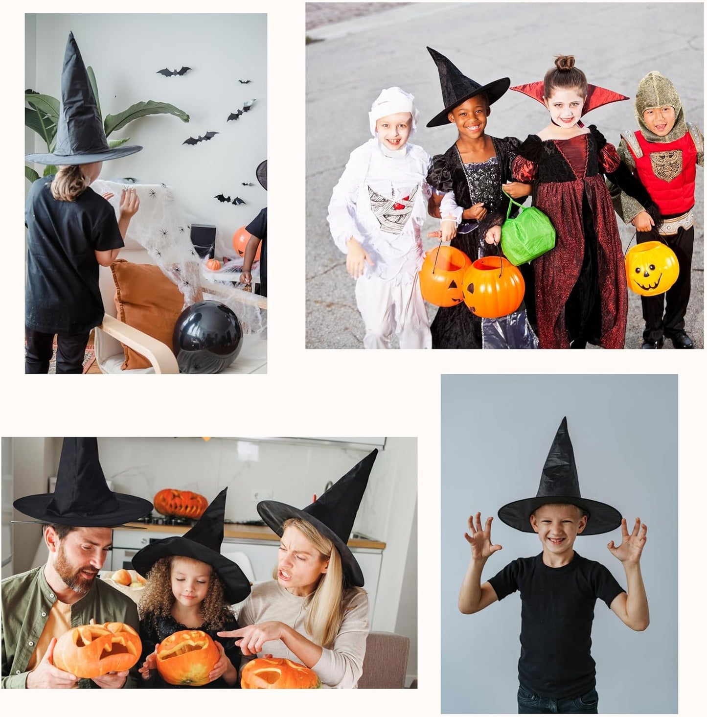 Classic Witch Hat Design: This black witch hat features a timeless and enchanting design, making it an essential accessory for kids’ Halloween costumes or cosplay events.