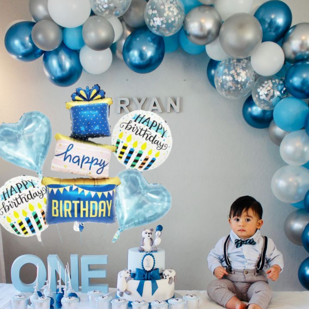 Decoration Set :Includes everything you need to create a stunning 3-layer birthday cake with a coordinated blue theme.