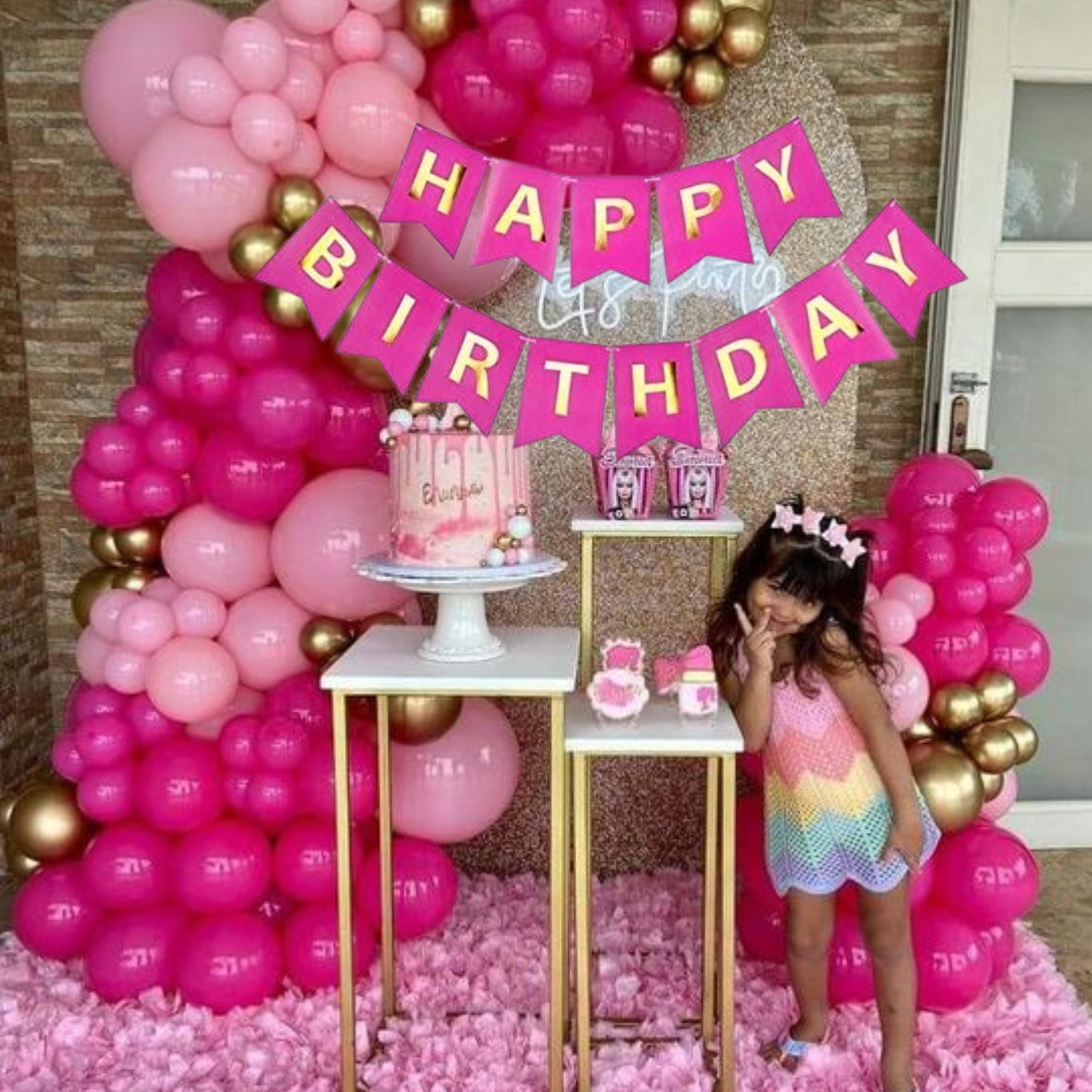 Happy Birthday Banner: Transform any space into a royal birthday celebration with our Happy Birthday Banner, a majestic combination of Hot Pink and gold. Measuring over 9 feet, this banner ensures your entire party space is adorned with wishes for the guest of honor.