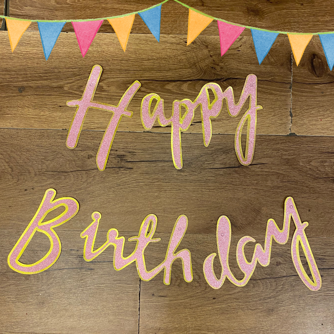 Wanna Party Cursive Happy Birthday Banner 13 Letter Glitter Banner for Girls/Mother /Wife/ Sister/Kids/Friend Birthday Decoration Kit, Rose Pink Glitter