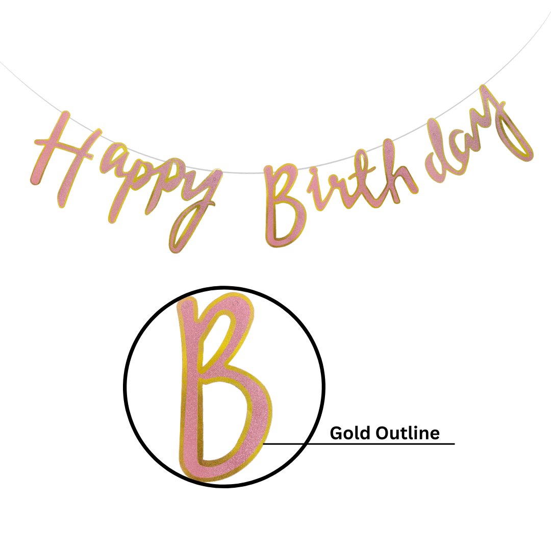 What you will get: 1 piece of "Happy Birthday" Rose Pink banner with Gold Trim Shiny border. The cursive-style lettering adds charm and sophistication to your birthday decorations, making it a standout piece.