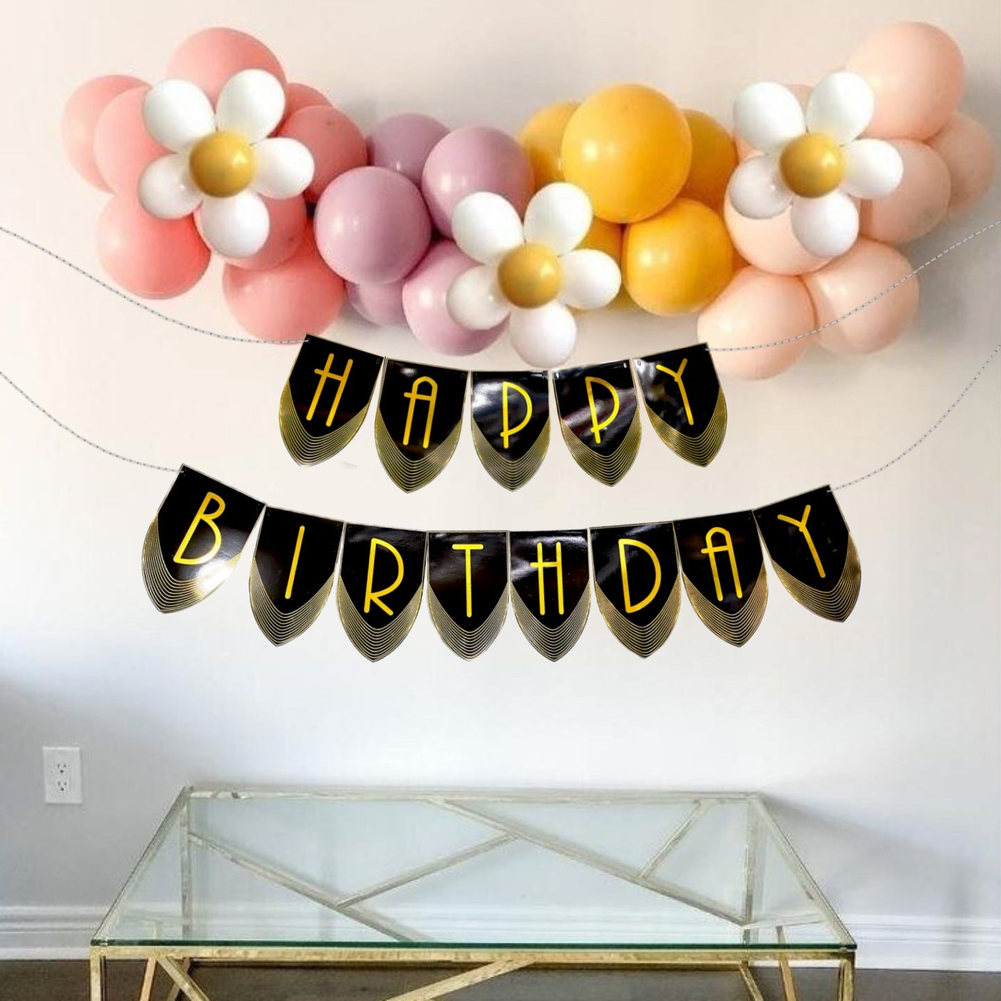 INSIDE THE PACK:This package contains 1 PCS Happy Birthday Designer Banner Black & Gold