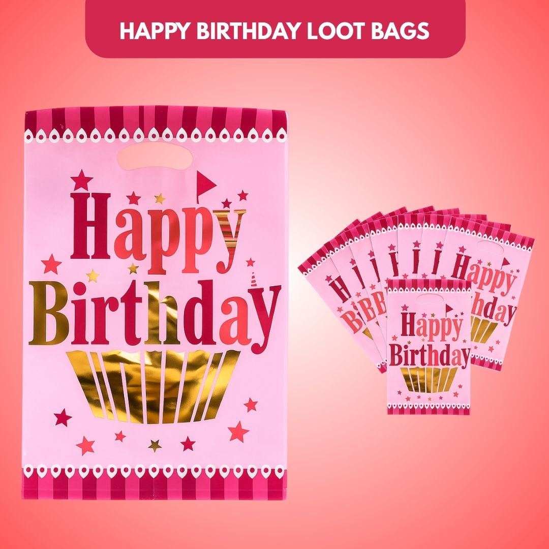 Our Happy Birthday Golden Cupcake Pink Aluminium Film Loot Bags are your invitation to immerse yourself in a realm of jubilation, where gifting becomes an art, and every moment is a celebration in itself.