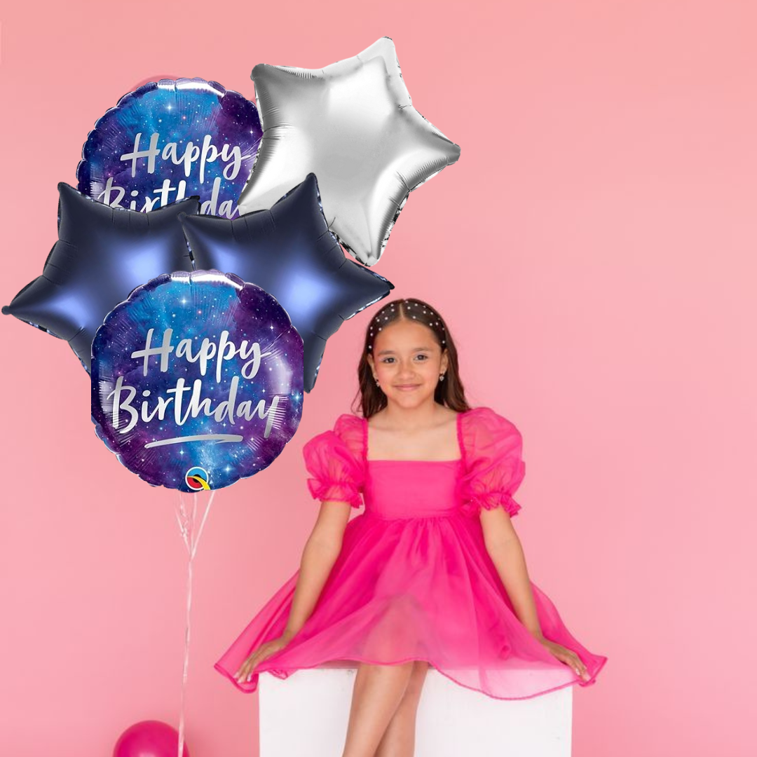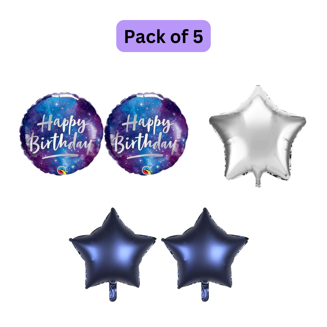 Wanna Party Blue & Silver Happy Birthday Foil Balloon Set- Pack of 5 for Balloon Bouquets, Starry Nights, Space Theme, Underwater Theme,Happy Birthday Foil Balloon Decorations for Boys