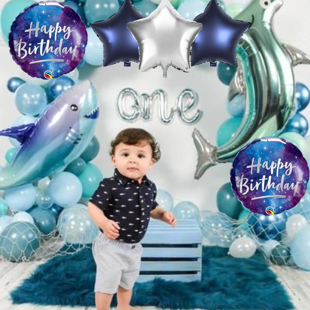 Night Sky Theme:Features a sophisticated night blue and grey star design, creating a serene and elegant atmosphere that adds a touch of class to birthday celebrations.