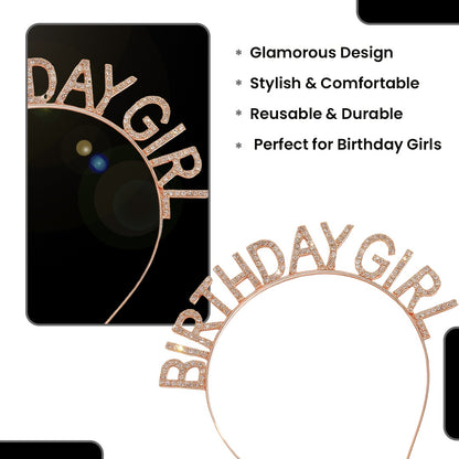 👑 Elegant Rose Gold Tiara Headband: Crafted with a sleek rose gold metal band, this rhinestone crystal tiara headband features a dazzling “Birthday Girl” design that sparkles from every angle. The flexible headband style offers a comfortable and secure fit for all head sizes without slipping.