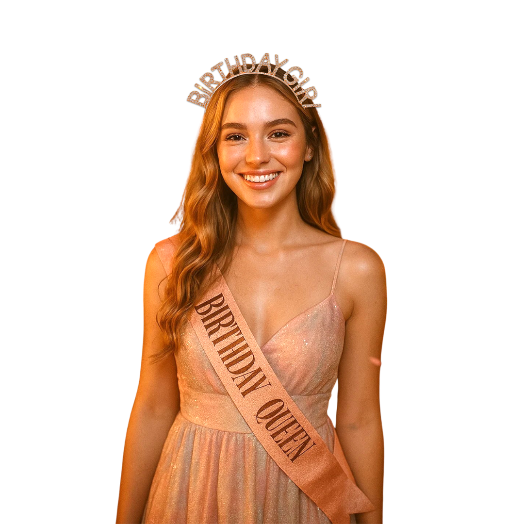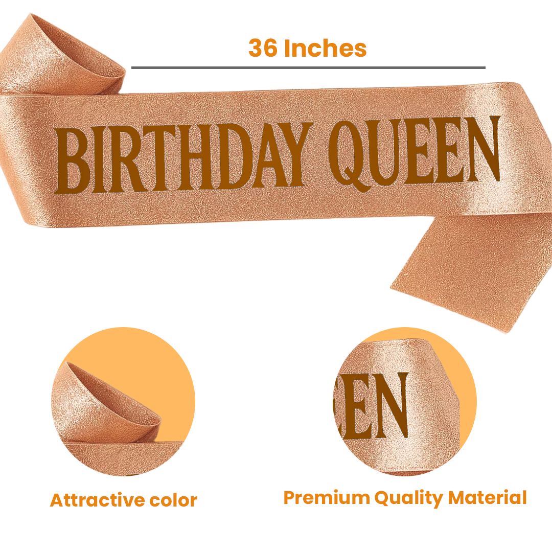 💖 Bold Foil-Printed Satin Sash: Made from premium fabric in a gorgeous rose gold shade, the sash showcases a striking “Birthday Queen” message in bold metallic foil print, ensuring the birthday girl stands out with glam and confidence at any celebration.