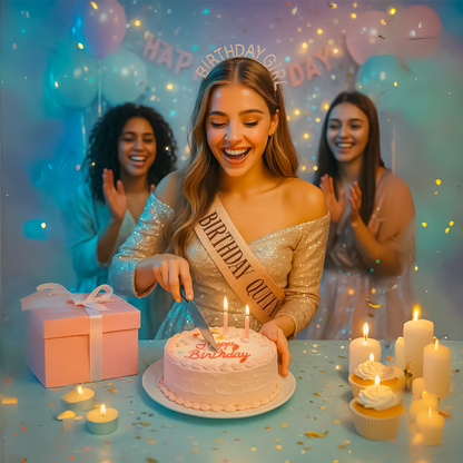 🎁 Thoughtful Gift & Keepsake: This set makes a fantastic gift for friends, sisters, daughters, or coworkers. The durable headband and wrinkle-resistant sash can be kept as a fun keepsake or reused for future birthdays and themed events.
