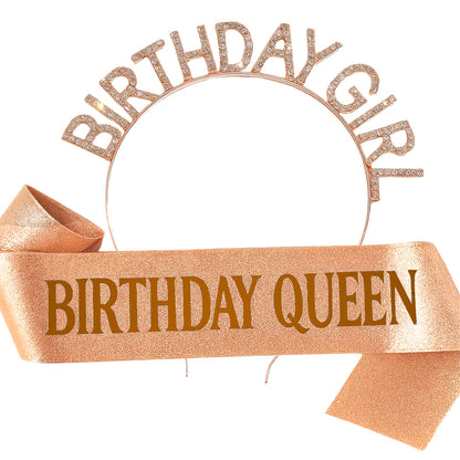 Happy Birthday Tiara Headband with Birthday Queen Sash Combo - 2PC