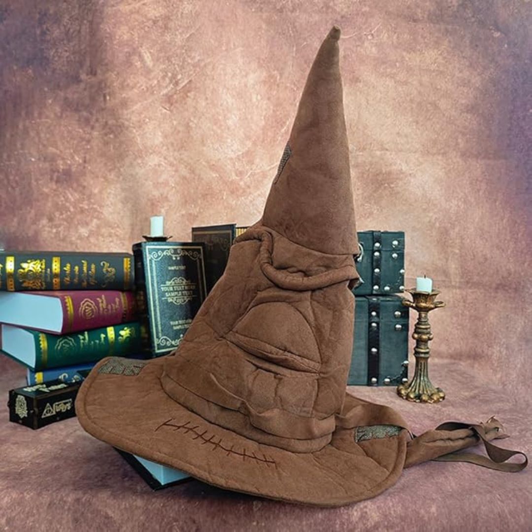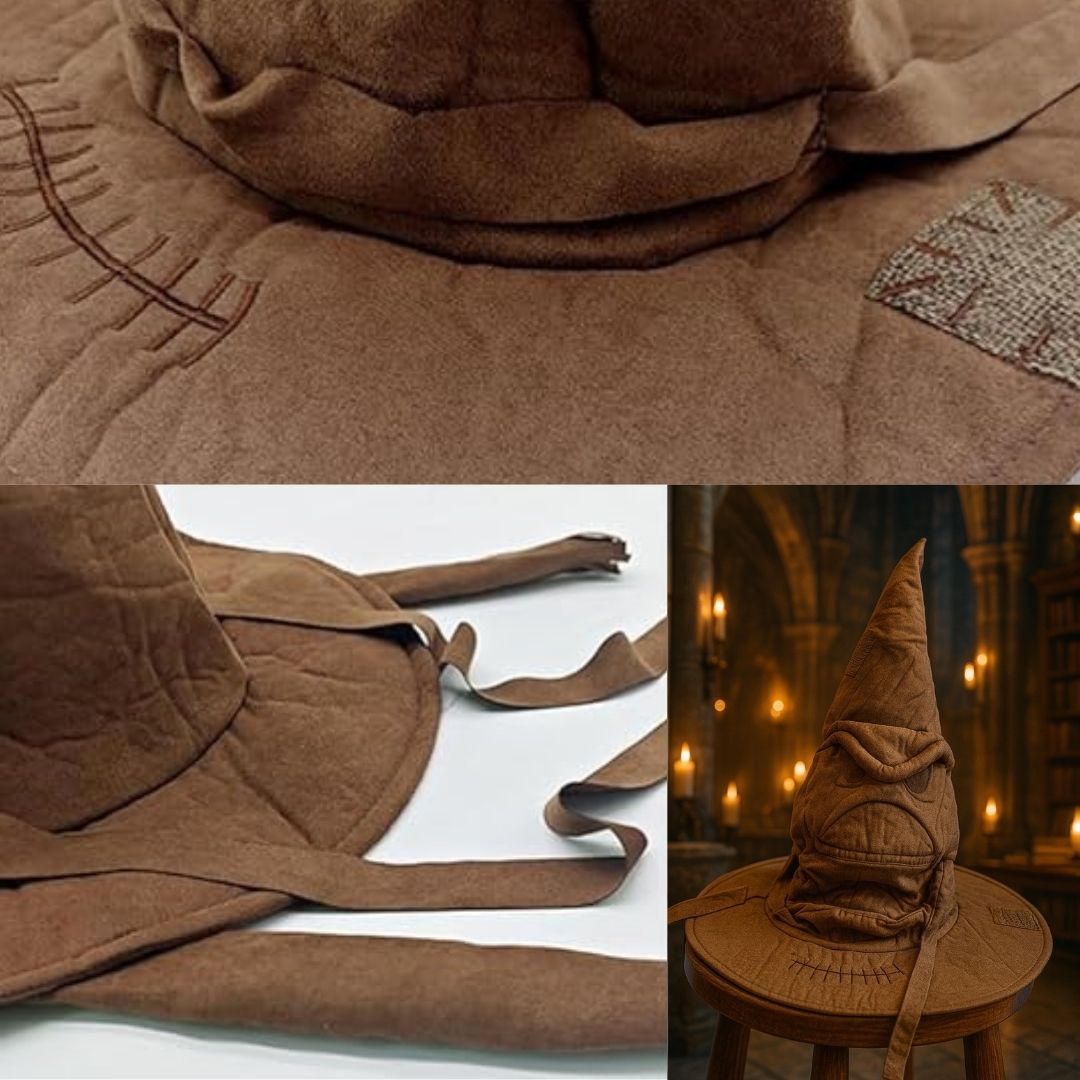 Detailed & Expressive Design: Features stitched facial folds and a pointed, slouchy shape that mimics the legendary talking hat’s wise and whimsical expression — a must-have for any wizarding fan’s collection.