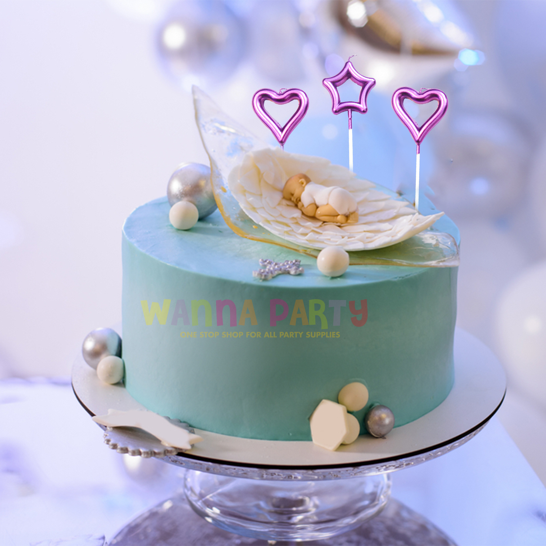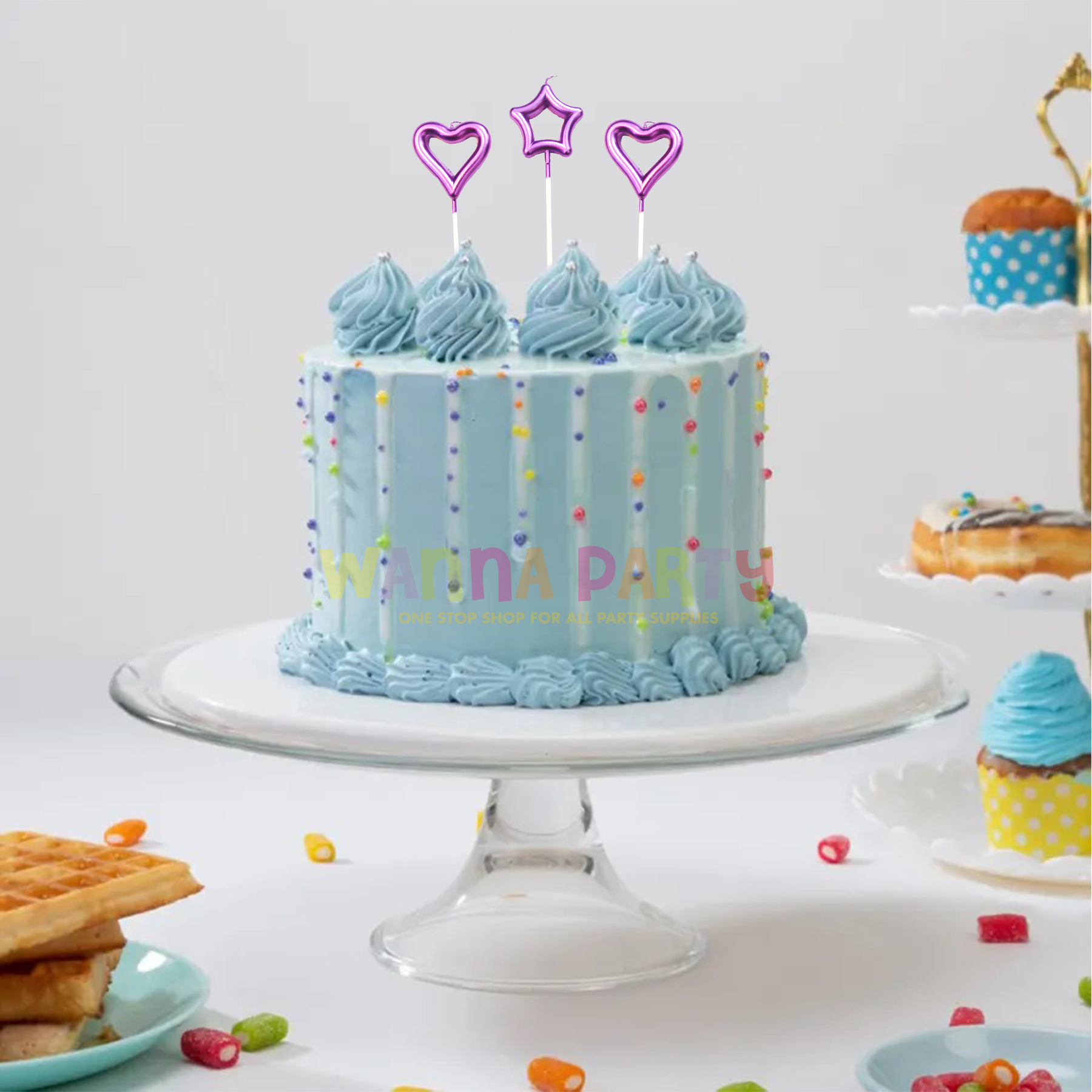 CAKE DECORATION:Add some sparkle to a cake's design with these Hot Pink Heart & Star Shaped Stick Candles. You can pair this with other candles to create any design you like. Easy to insert & light up.