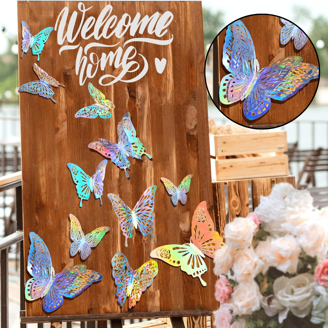 Wanna Party Pack of 12 3D Laser Butterfly Wall Decor 3 Sizes, Butterfly Birthday Decorations, Butterfly Party Decorations, Baby Shower Decorations, Cake Decorations