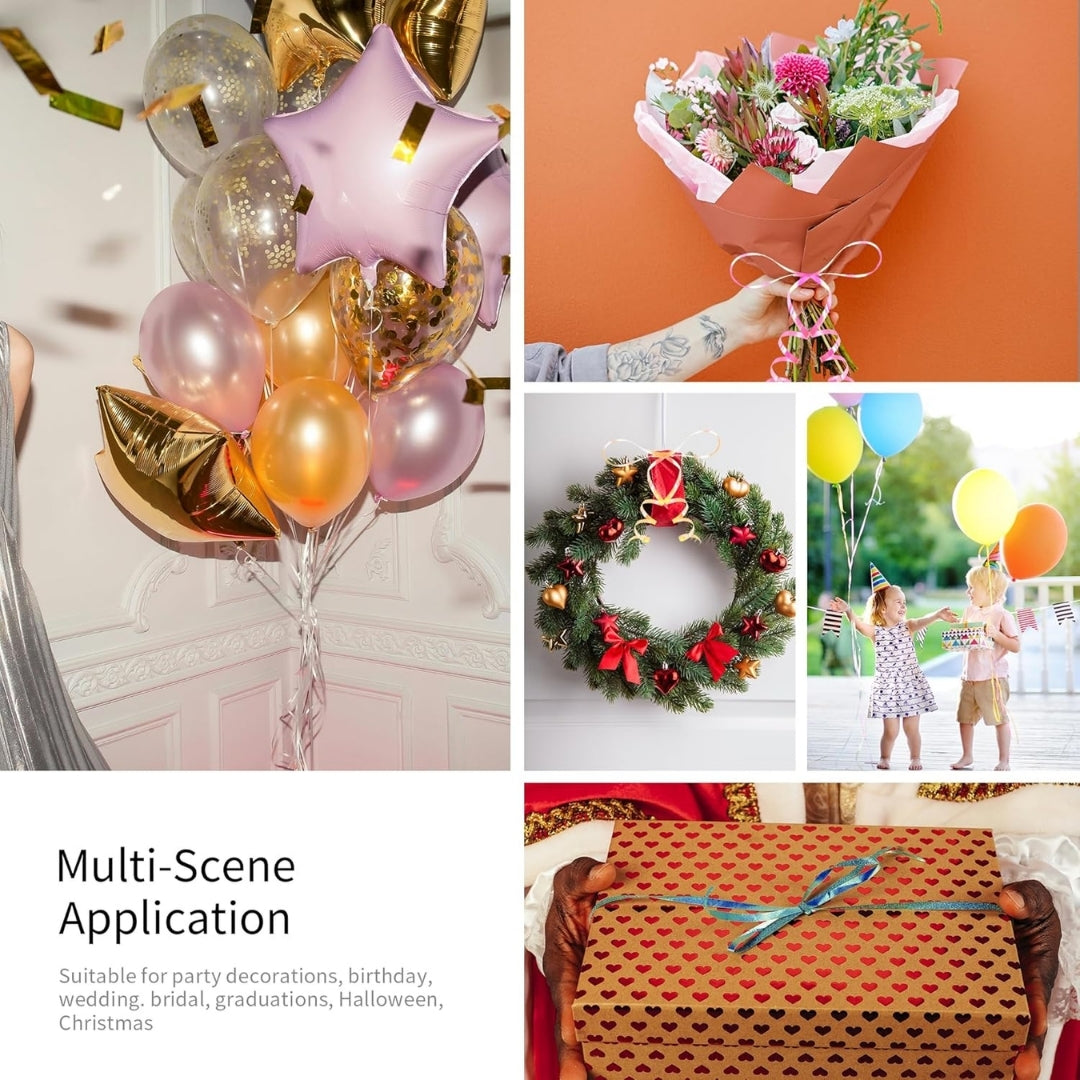 Versatility: Ideal for birthdays, weddings, baby showers, anniversaries, and festive celebrations, this ribbon complements any color theme. Use it to tie helium balloons, wrap gifts, or add decorative flair to centerpieces, favor bags, and backdrop elements.