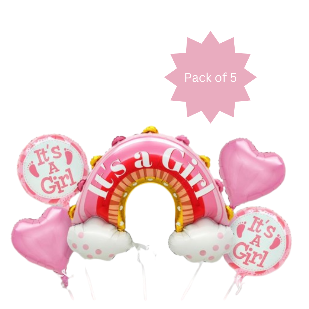 INSIDE THE PACK:The pack contains It's a Girl Rainbow Balloon, PACK OF -5