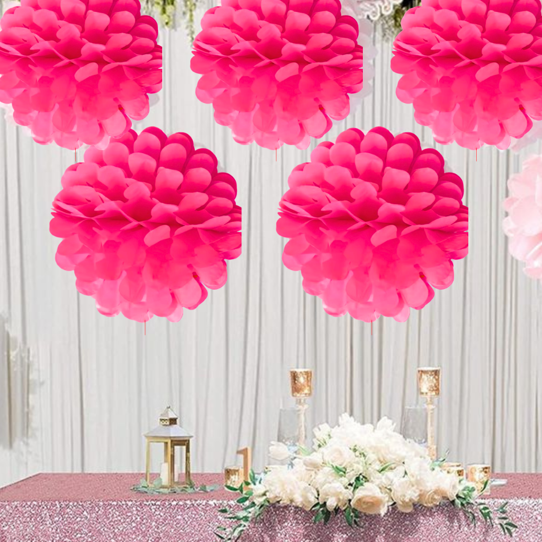 INSIDE THE PACK: The pack contains Paper Pom Pom Hangings for Decoration, Fluffy Decoration- Hot Pink, PACK OF - 5