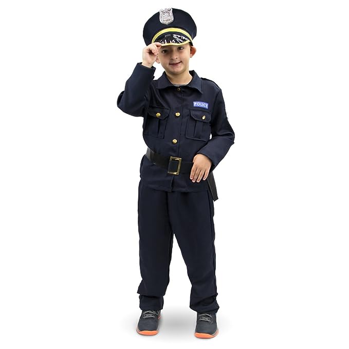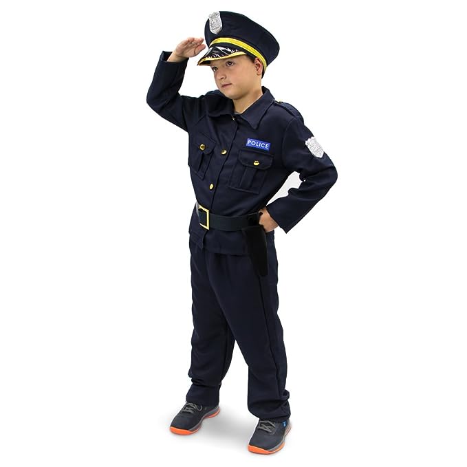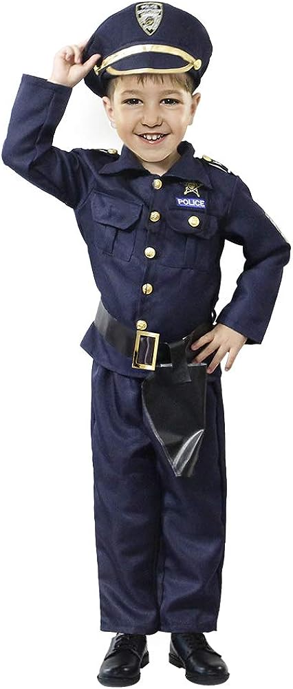Realistic Police Officer Look: This police costume is designed to mirror an authentic uniform with sharp details – from the classic navy blue shirt and pants to shiny golden buttons, faux badge, and matching belt. It gives your child the full experience of stepping into a real police officer costume.