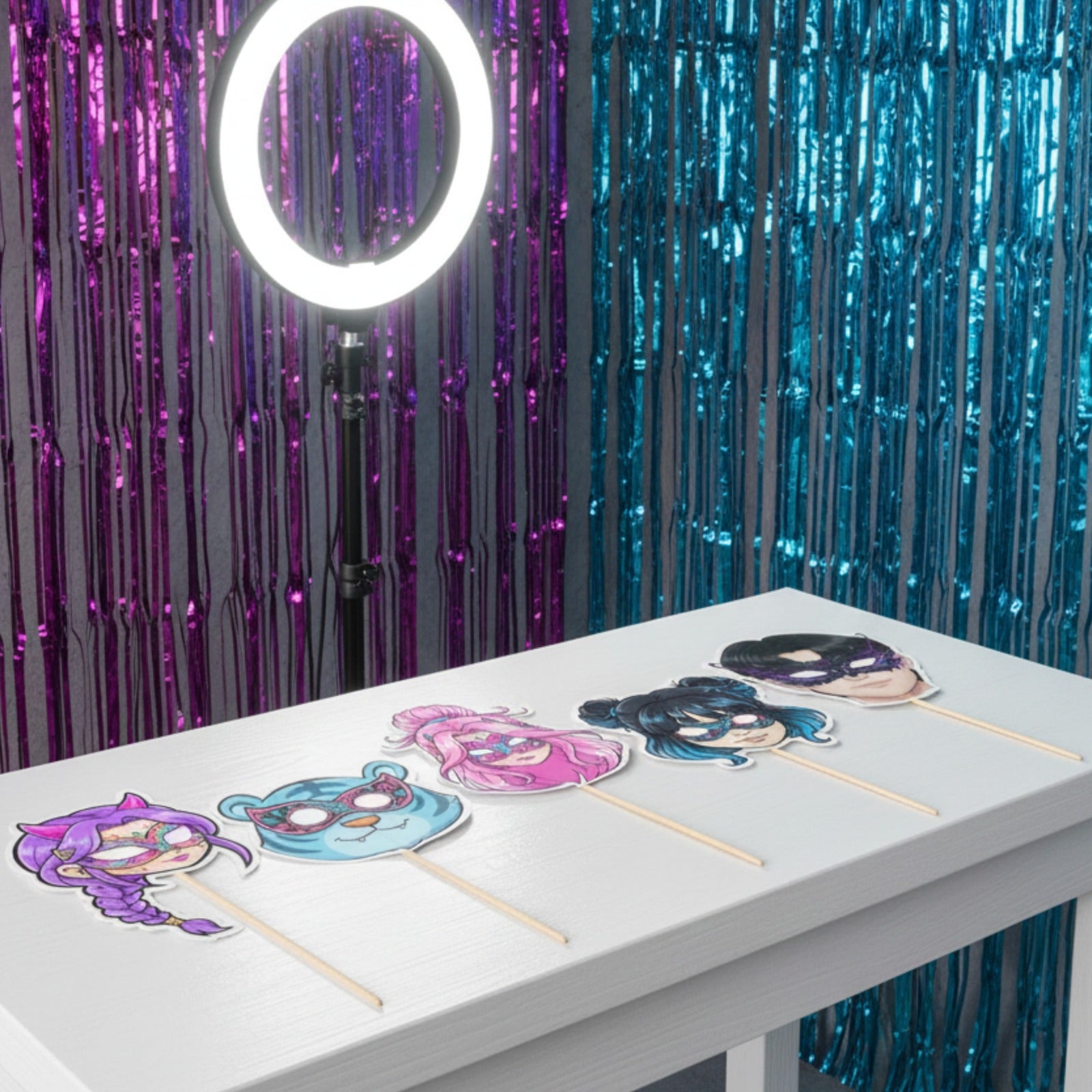Exciting Kpop Demon Hunters Theme: This set includes 5 dynamic photobooth props inspired by the popular Demon Hunters universe, featuring iconic symbols, character elements, and stylish K-pop designs that fans love. Perfect for boys’ and girls’ themed birthdays, parties, and fan events.