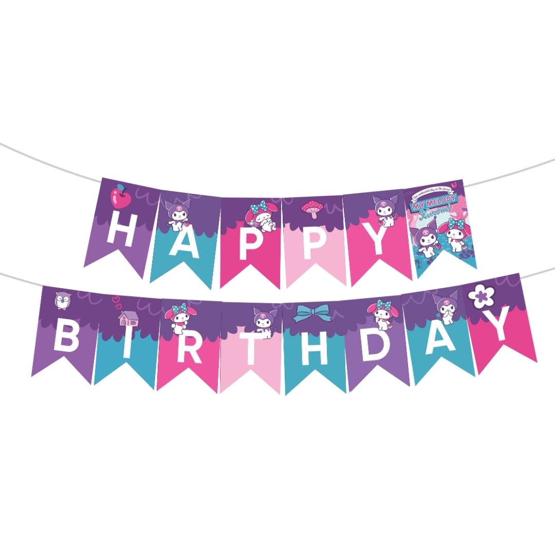 🎂 Adorable Kuromi Theme – Designed with Kuromi and My Melody elements, the decorations feature charming prints in a mix of pink, purple, and black for a cute yet edgy aesthetic that Kuromi fans will love.