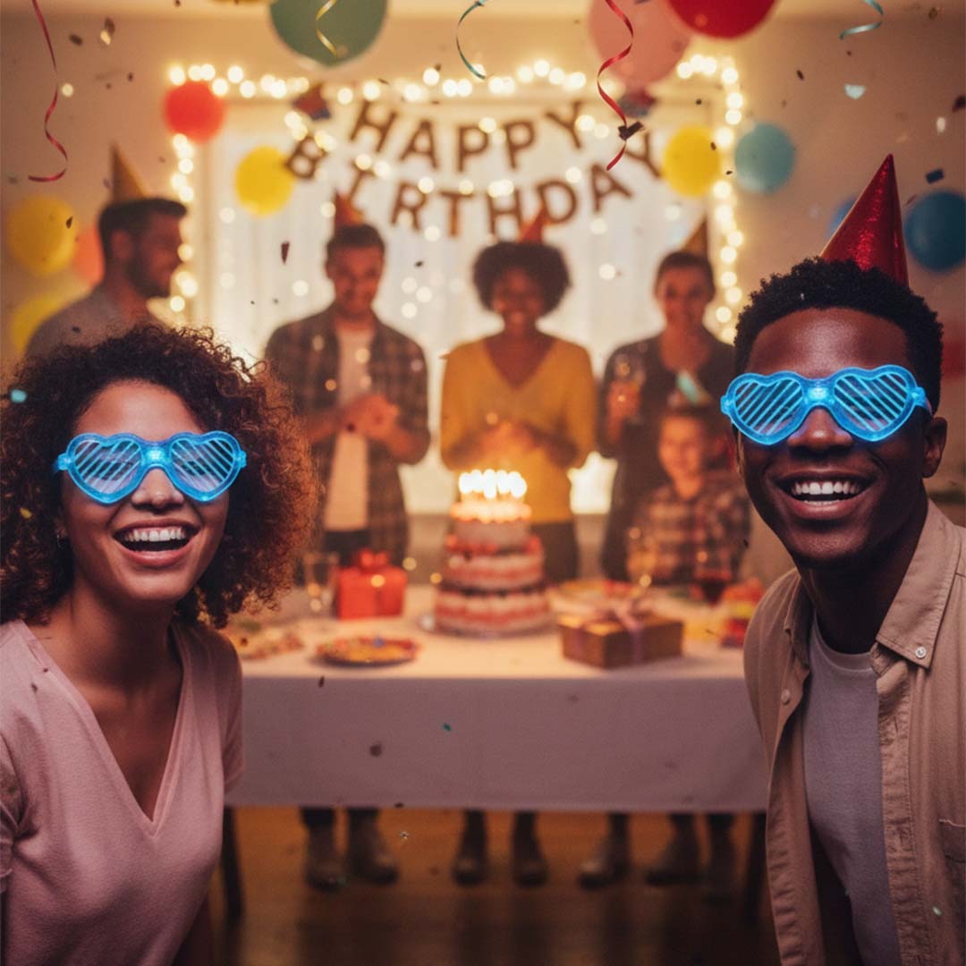 Eye-Catching Heart-Shaped Design: Stand out instantly with LED heart wired shades featuring a trendy heart shape that adds a fun and playful vibe to your party look. Perfect for making bold fashion statements at celebrations and events.