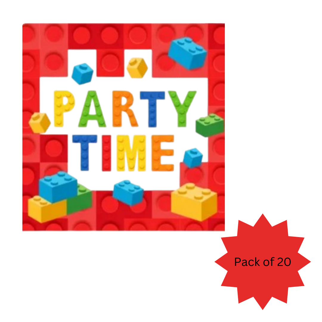 Wanna Party Bold & Bright Building Blocks Birthday Luncheon Napkins (Pack of 20) - Sturdy & Stylish Design - Perfect Party Essential for Building Blocks Lovers.