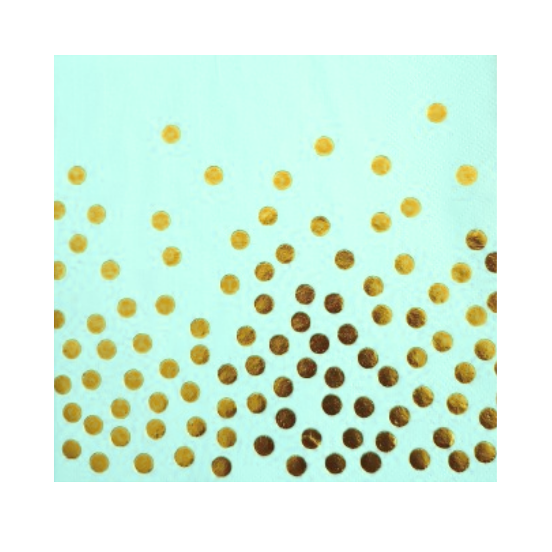 Light Blue Paper Napkins w/Golden Polka Dots - 20PC