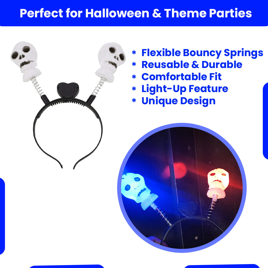 Light-Up Skull Popper Feature: Each headband comes with spring-mounted skulls that bobble and glow, adding movement and a fun jump-scare effect. The light-up feature enhances visibility in the dark, making it a hit during nighttime events and outdoor Halloween celebrations.