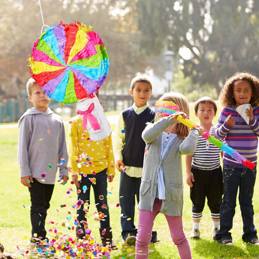 BENEFITS -Beyond its interactive function, this Rainbow Lollipop Pinata serves as a colorful piece of decor, adding a touch of sweetness to your party setting.