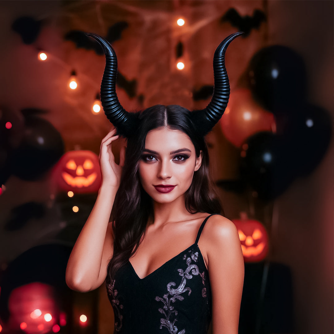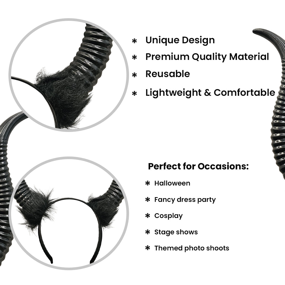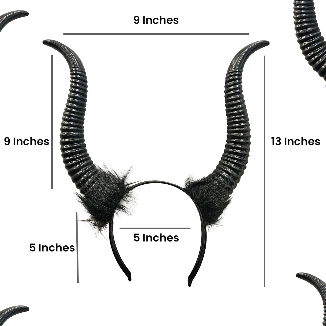 Transform into the dark fairy queen with this striking Maleficent-style horn headband. The dramatic curved horns and black hairy edges create a bold, magical aura perfect for Halloween parties, cosplay events, or fantasy-themed photoshoots.
