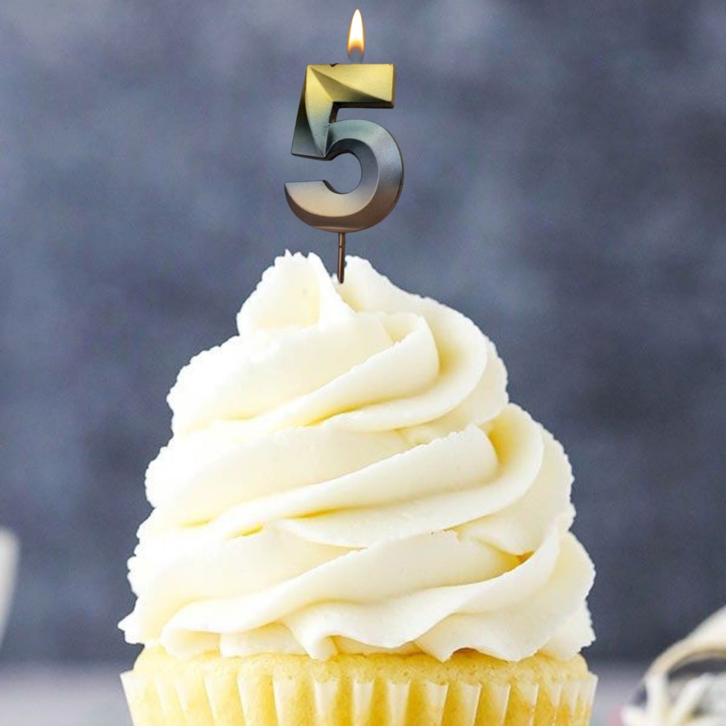 STYLISH DESIGN:Our Numerical Candle Number 5 features a sleek and stylish design that effortlessly enhances any cake, cupcake, or dessert. Featuring a beautiful metallic golden, purple and pink shade, the candle is carefully shaped into the number five , ensuring a clear and distinct presentation.