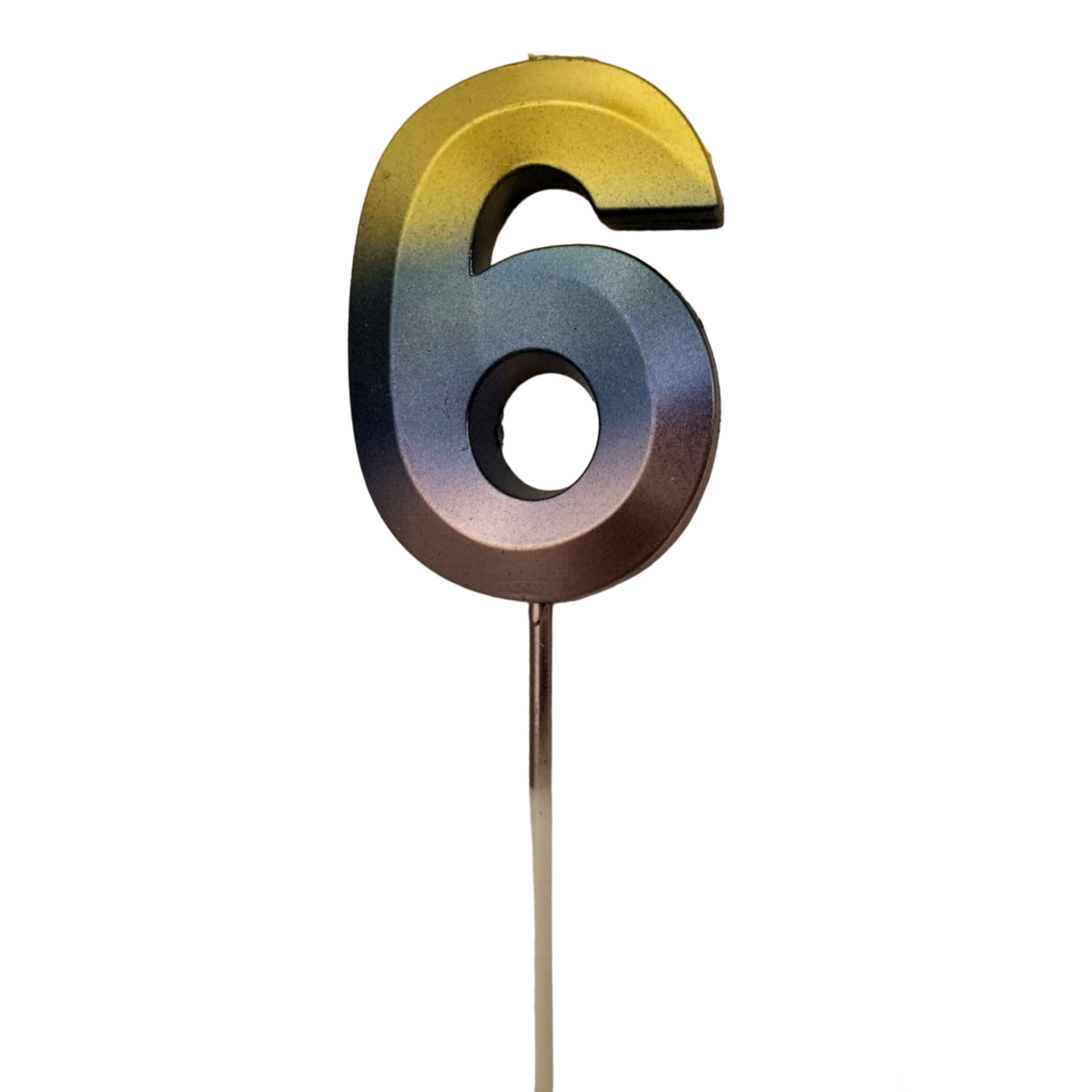 Number 6 Metalic Golden Purple Pink Stick Candle - 1PC