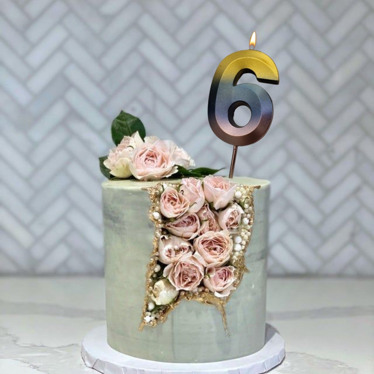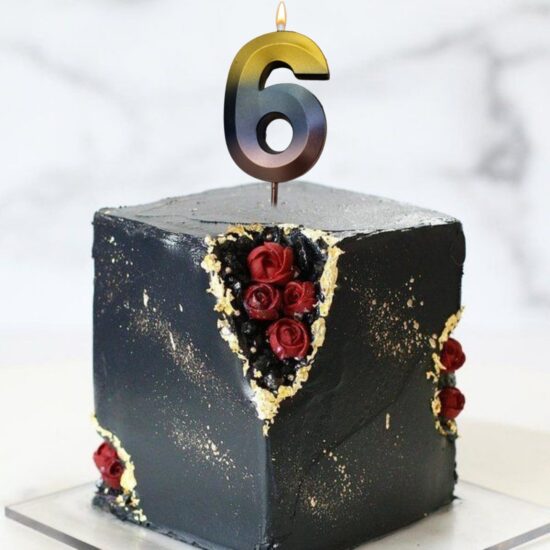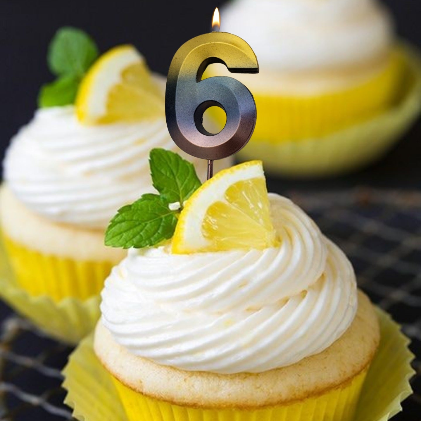 STYLISH DESIGN:Our Numerical Candle Number 6 features a sleek and stylish design that effortlessly enhances any cake, cupcake, or dessert. Featuring a beautiful metallic golden, purple and pink shade, the candle is carefully shaped into the number six , ensuring a clear and distinct presentation.