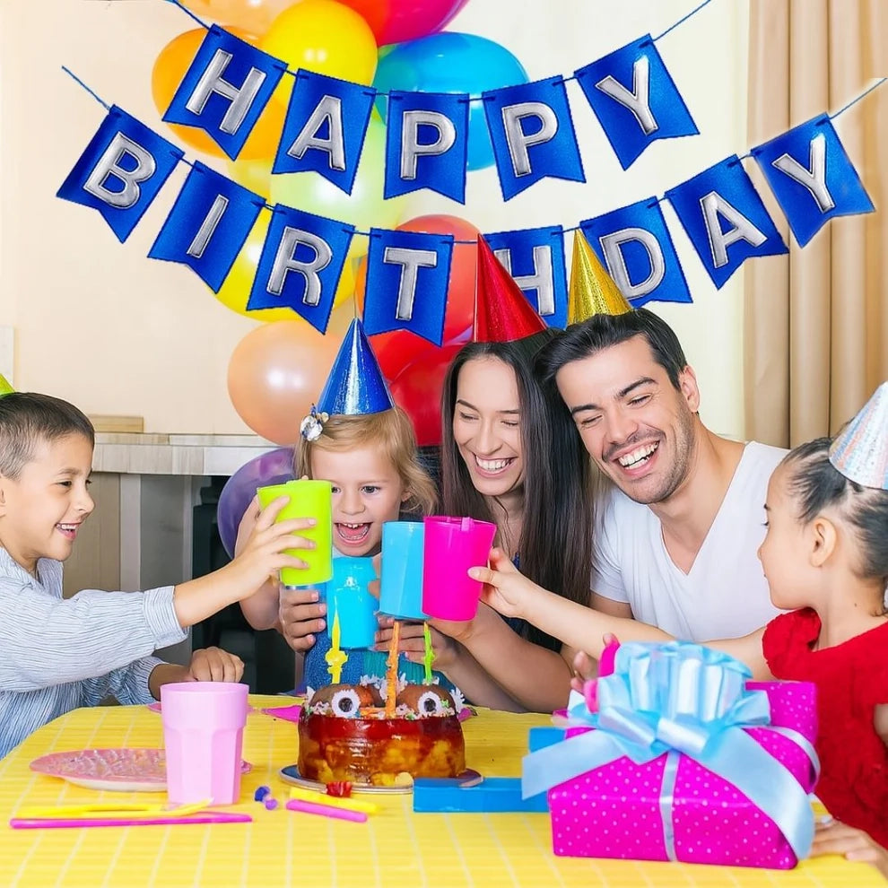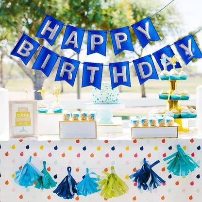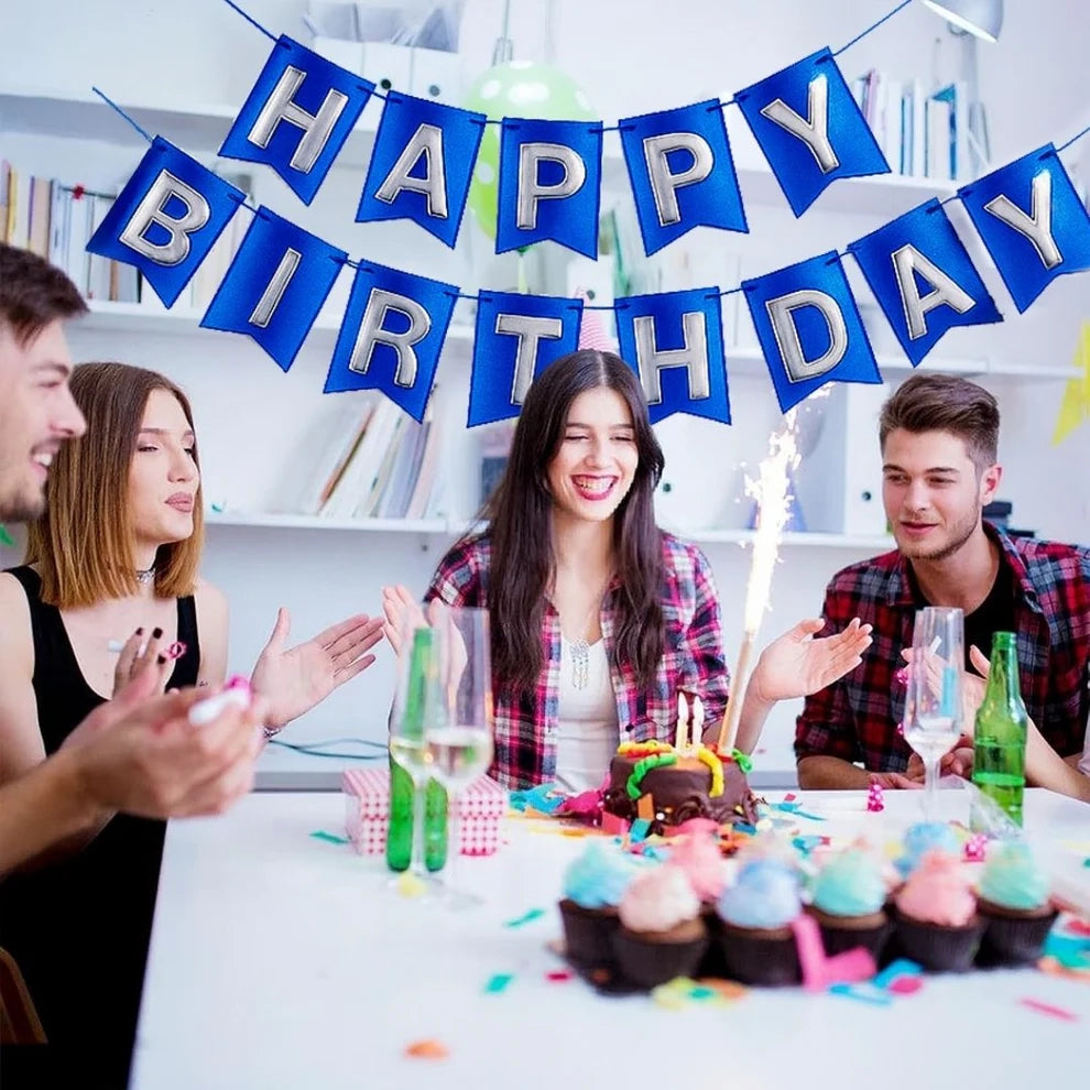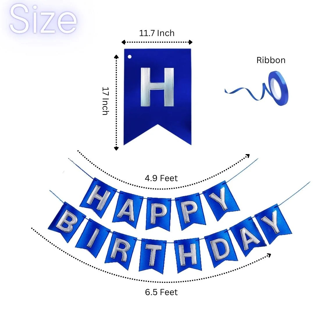 Striking Royal Blue Shine: This "Happy Birthday" banner boasts a rich metallic royal blue finish that adds a bold, elegant, and festive look to any birthday celebration.