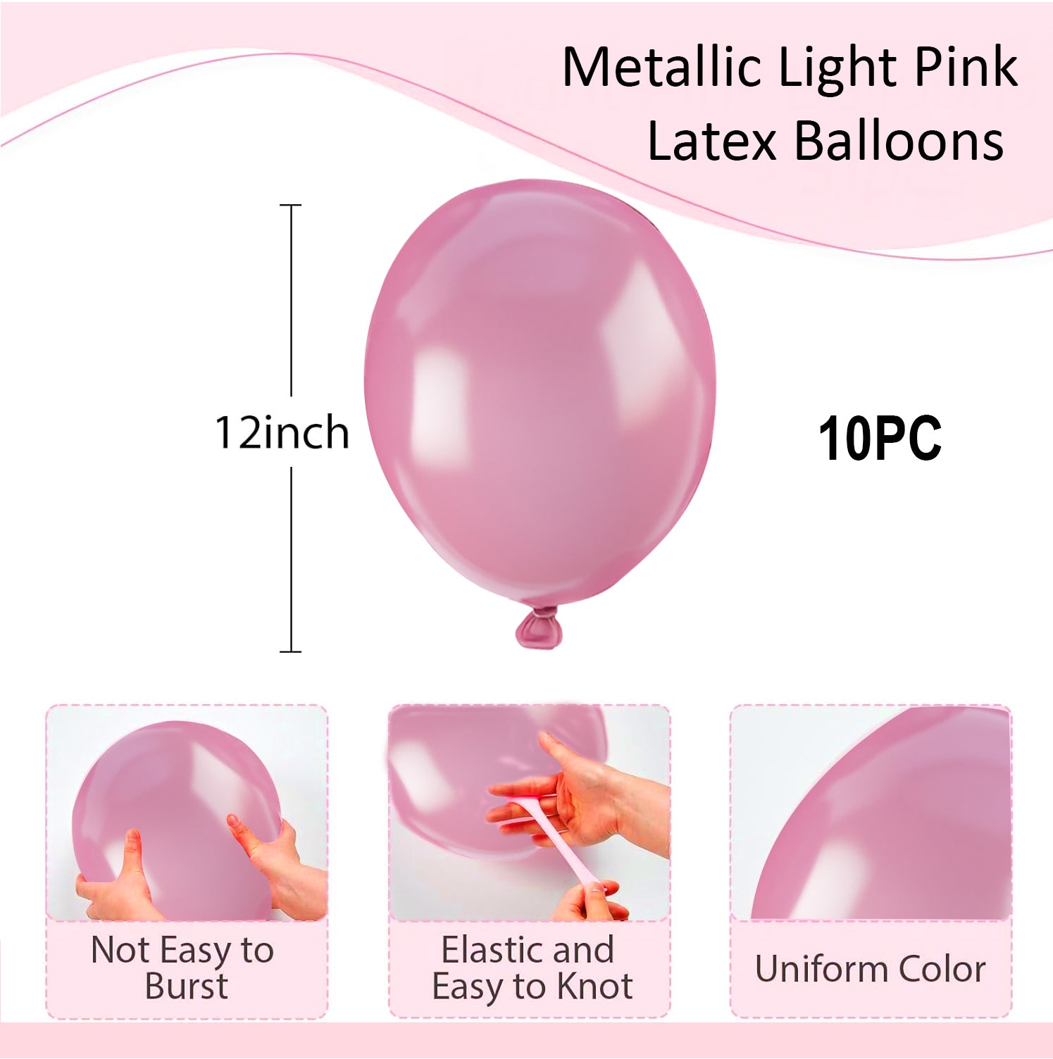 Wanna Party Metallic Pastel Pink Balloons, 10 pcs 12 Inch Pink Balloons, Baby Pink Balloons for Balloon Garland Balloon Arch as Birthday Decorations, Wedding Decorations, Baby Shower Decorations