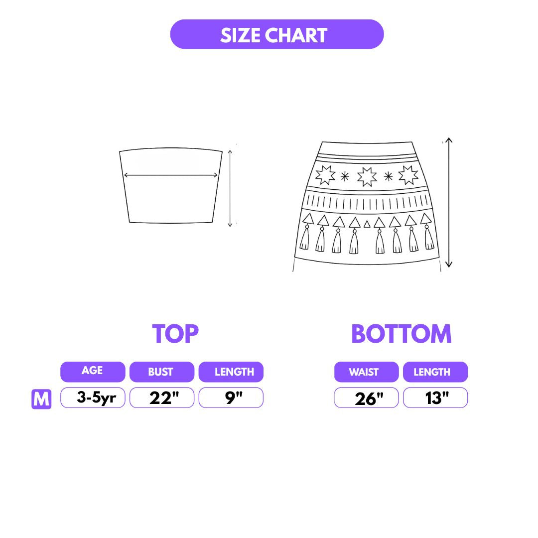 Princess-Worthy Details: Features decorative fringe tassels, printed symbols, and vibrant colors that capture the essence of an ocean princess. The tie sash adds a charming touch, while the skirt layers create graceful movement.