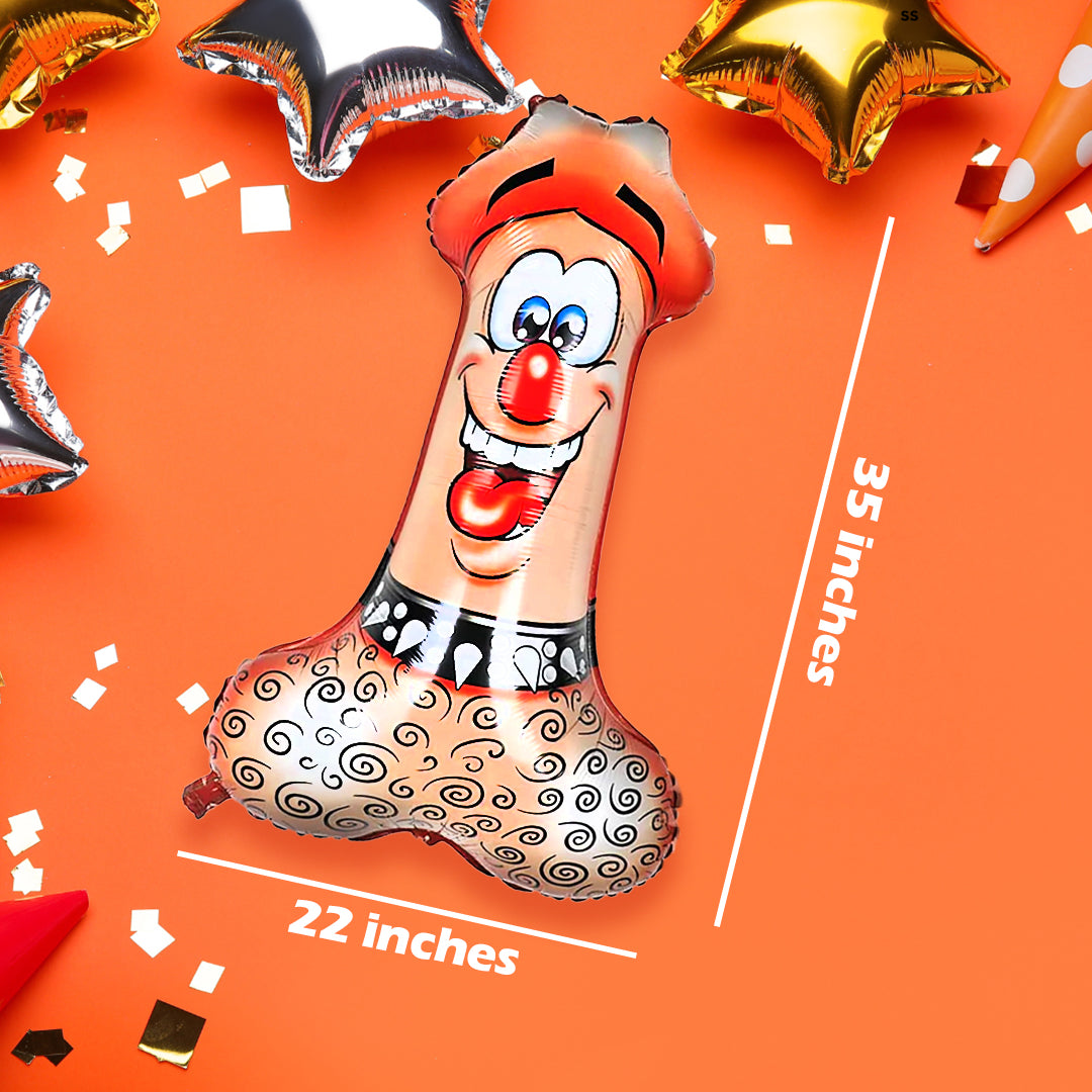 QUIRKY SHAPE FOR PARTIES: Add a touch of naughtiness and mischief to your adult parties with this giant Mr Willy Shape Foil Balloon. Sturdy Big Willy décor will perfectly hit your centerpiece or dessert table decorations, and backdrops.
