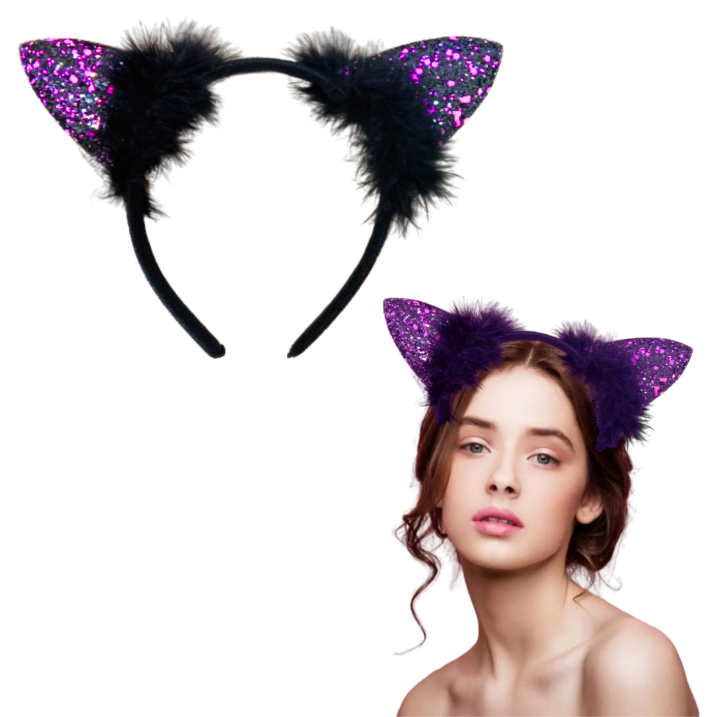 Naughty Cat Ears Glittery Purple Headband for Girls - 1PC