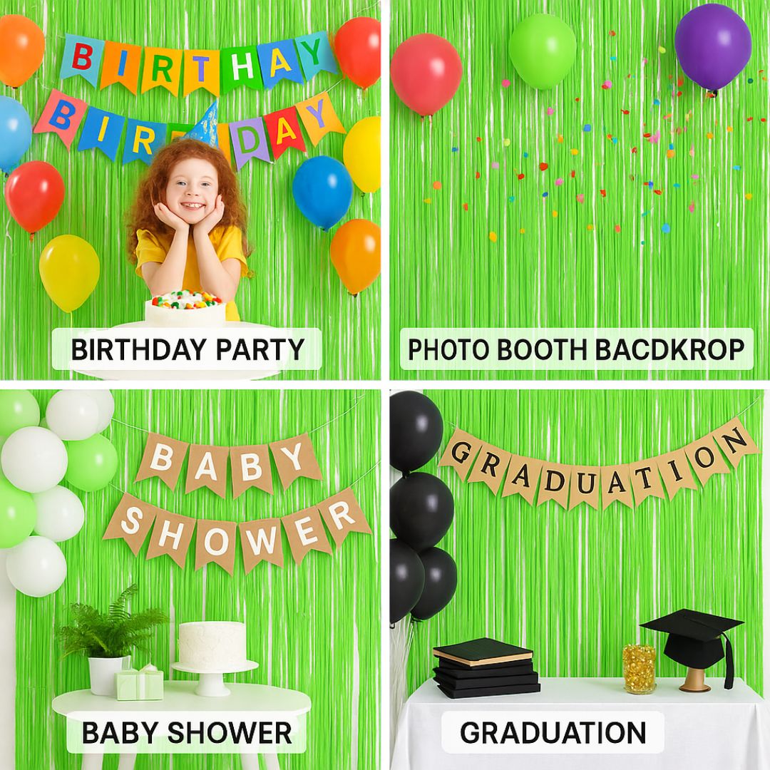 WALL DECORATION: Our Neon Green Foil Curtain adds a playful and dynamic element to your party decoration. As the light hits the curtains, the shimmer creates a mesmerizing display, making your event photos even more memorable.