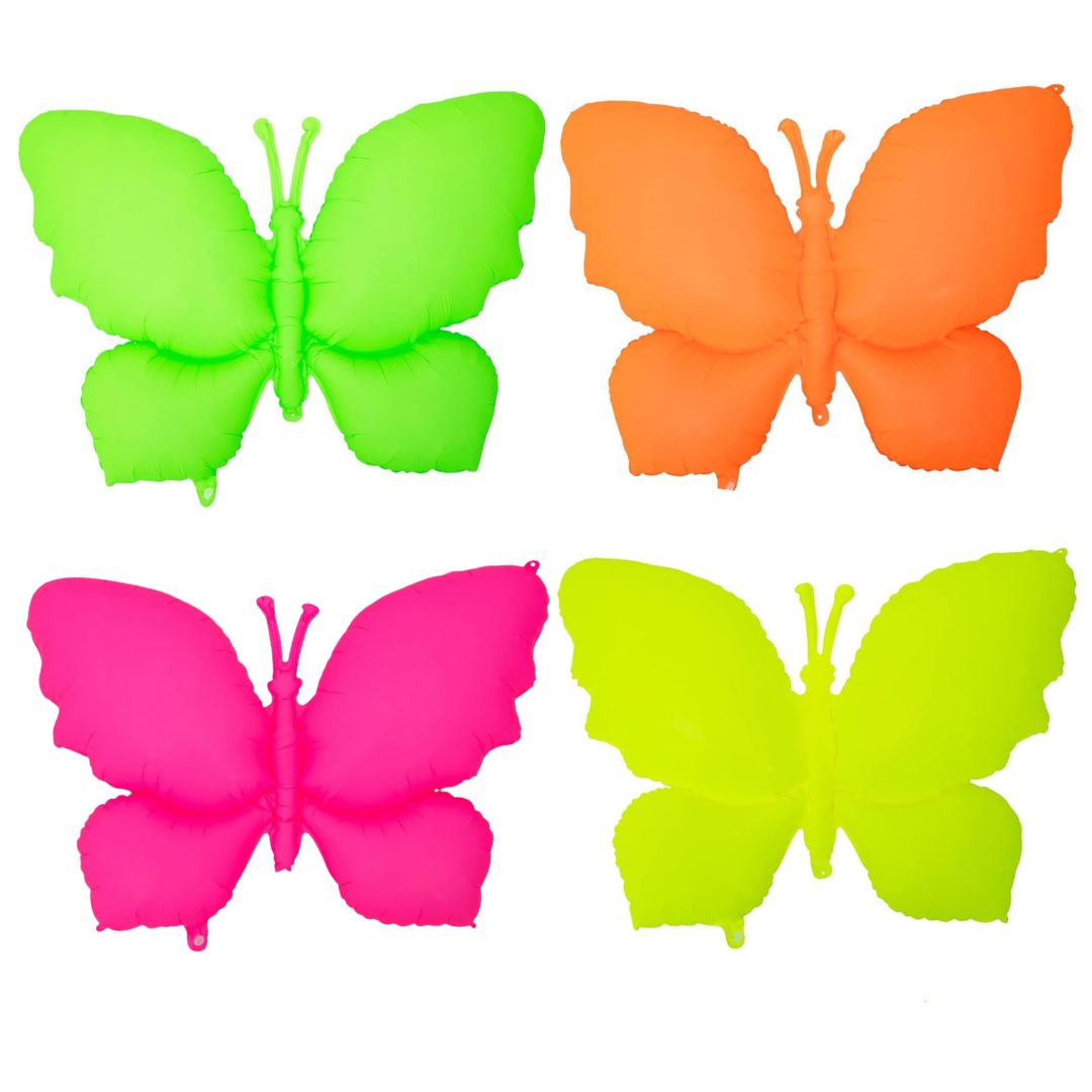 Neon/UV Florescent Butterfly Shaped Foil Balloons - Air Filled - 18 inches - Set of 4