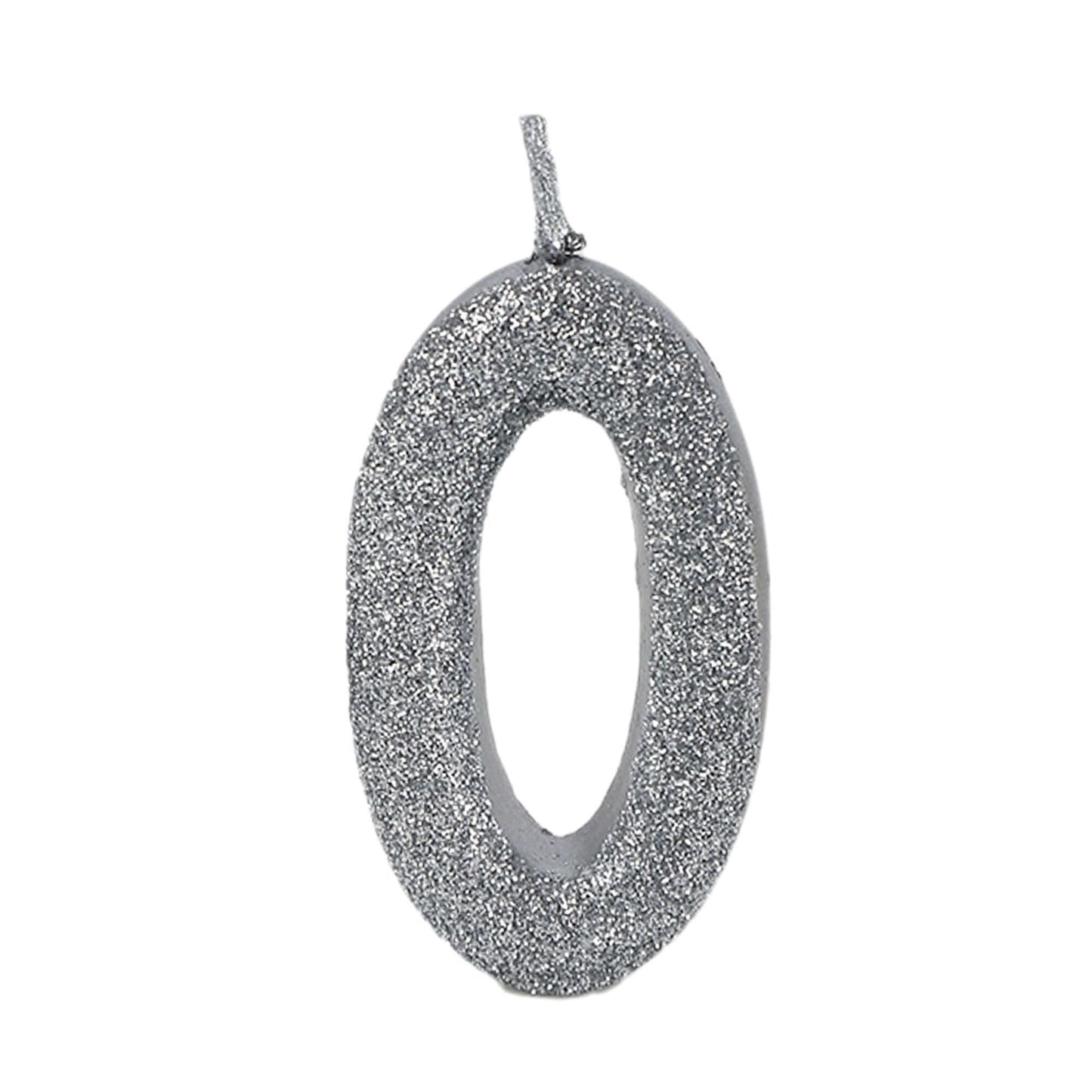 Wanna Party Number 0 Glitter Silver Candle for Birthday Decoration Items/Cake Toppers/Cake Decorations