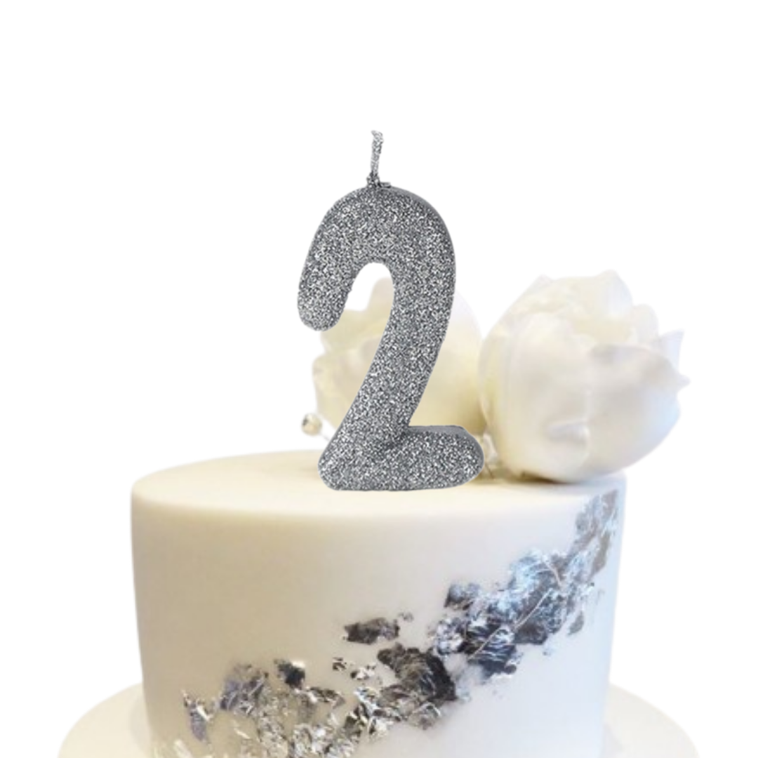 Sparkling Elegance: Enhance your birthday or milestone celebration with our enchanting Glitter Silver No. 2 Candle, radiating shimmering allure atop your cake. Symbolizing beginnings and endless possibilities, the number 2 candle is perfect for commemorating new journeys and fresh starts.
