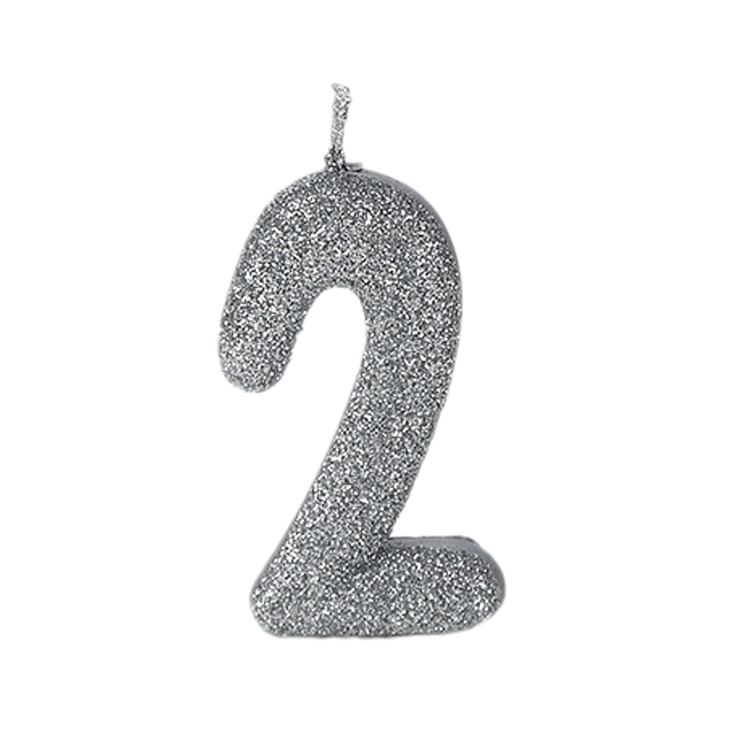 Wanna Party Number 2 Glitter Silver Candle for Birthday Decoration Items/Cake Toppers/Cake Decorations