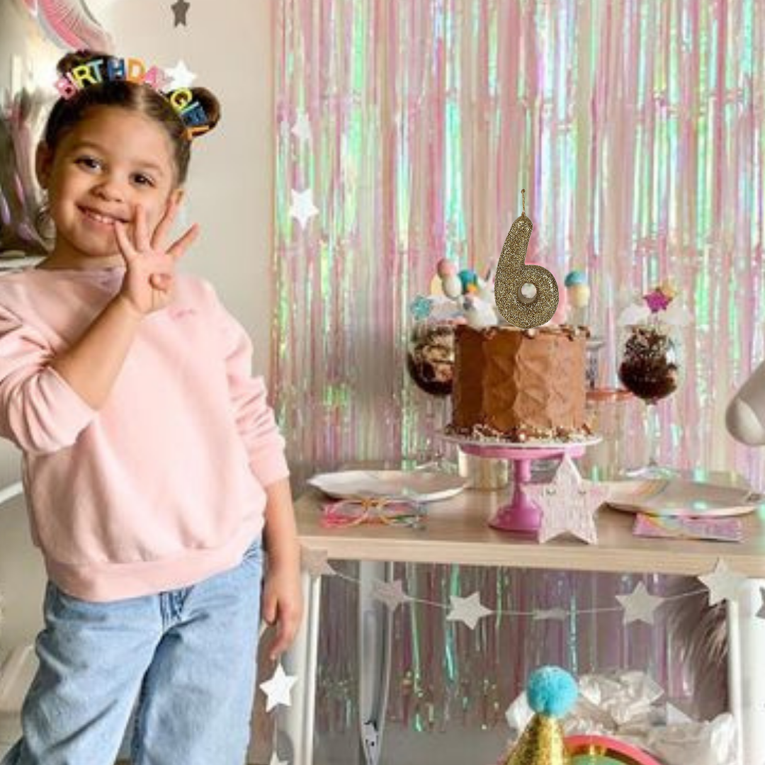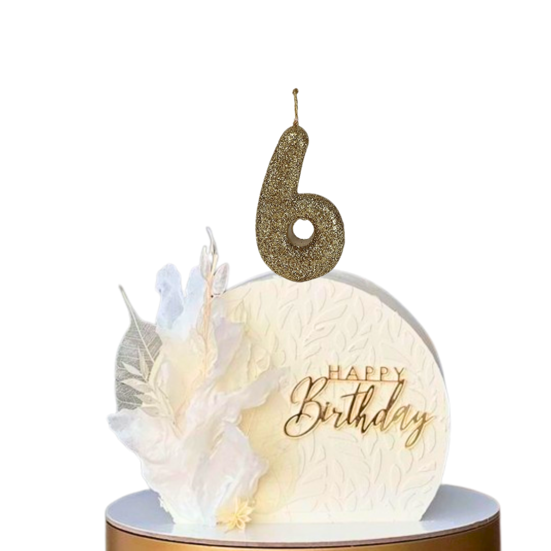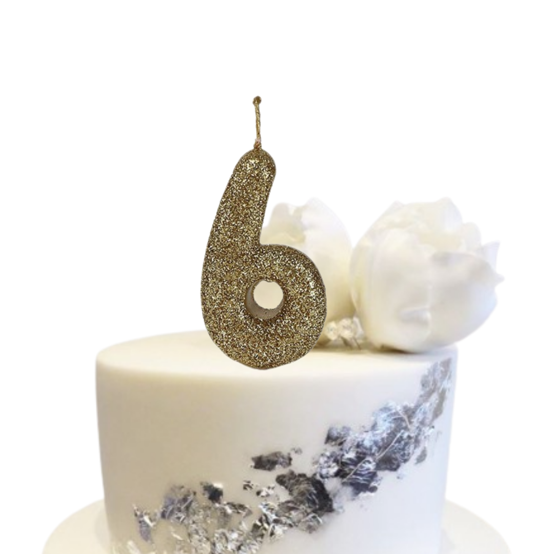 Glittering Elegance: Elevate your birthday or milestone celebration with our dazzling Glitter Gold No. 6 Candle, radiating shimmering splendor atop your cake. Representing creativity, expansion, and growth, the number 6 candle is ideal for commemorating significant milestones and achievements.