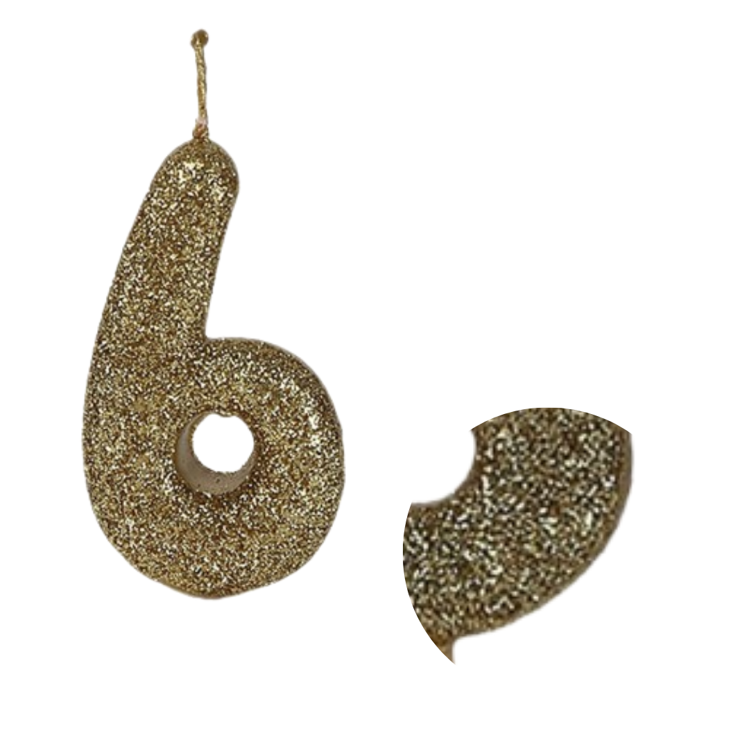 Number 6 Golden Glitter Candle - 1PC